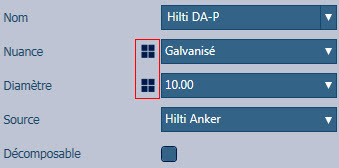 Une fois que vous avez créé des catégories de boulons, les filtres, marqués par 4 carrés, sont utilisés pour filtrer la classe et les diamètres spécifiques à une certaine classe de boulons.