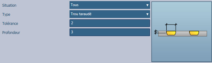 - Trous taraudés : ces trous doivent également avoir une valeur de profondeur :