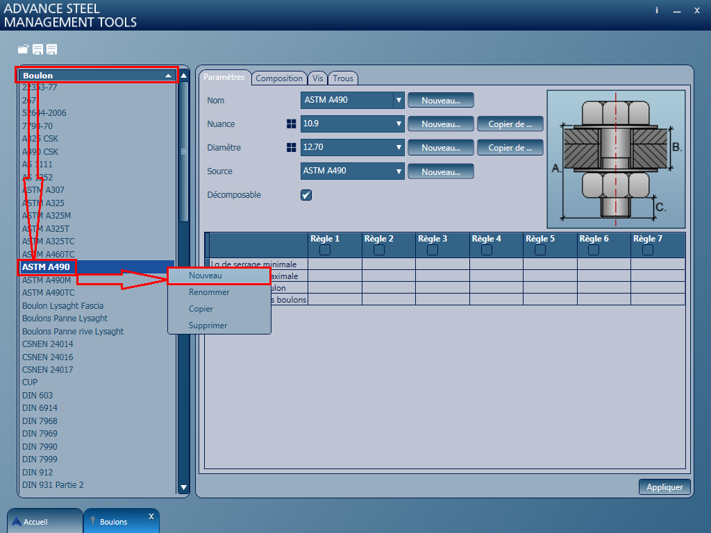 Pour créer un nouveau boulon :