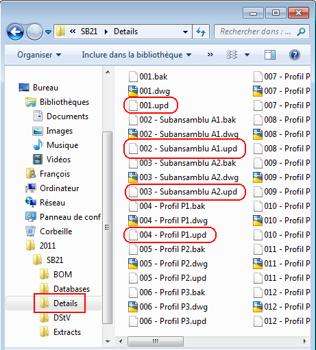 Lorsque les détails sont générés, les fichiers ".upd" sont automatiquement créés par Advance Steel. A chaque détail correspond un fichier ".upd".