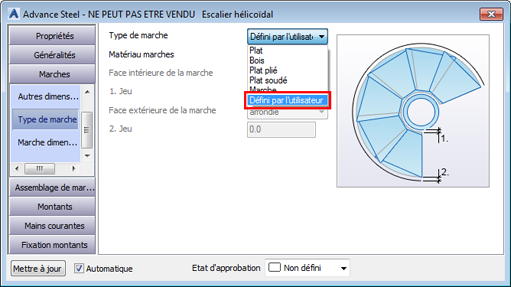 Sélectionnez Défini par l'utilisateur dans la liste déroulante Type de marches (voir la première figure).