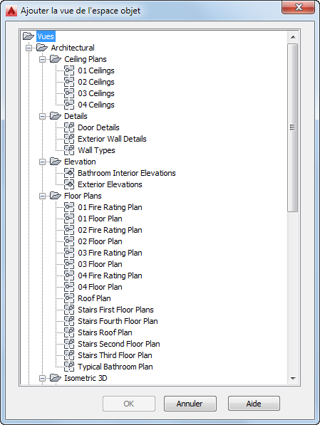 15. Dans la boîte de dialogue Ajouter la vue de l'espace objet, sélectionnez le dessin de vue du projet dans lequel placer la vue de l'espace objet et cliquez sur OK.
