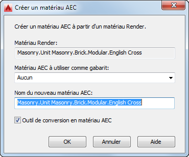 • Vérifiez que l'option Outil de conversion en matériau AEC est sélectionnée.