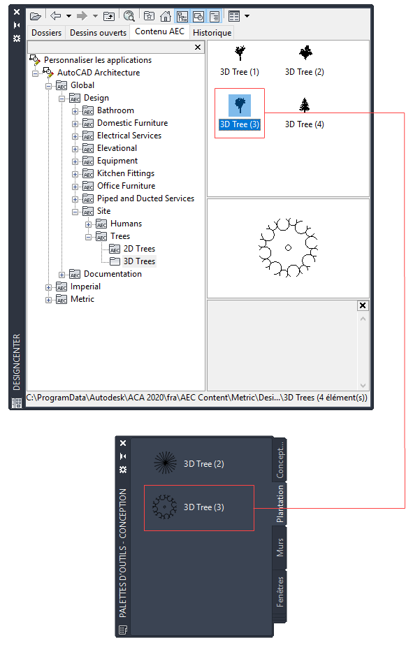 - Dans l'onglet Contenu AEC, naviguez jusqu'au dossier comportant le contenu AEC à partir duquel vous voulez créer un outil.