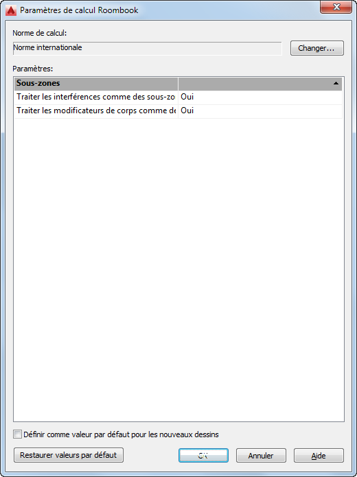 Ce champ affiche la norme de calcul courante. Pour changer de norme, cliquez sur Changer.