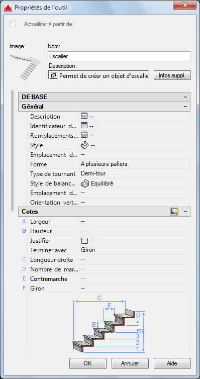 Avant de créer un outil de style d'escalier, il peut être utile de prendre en considération les paramètres prédéfinis facultatifs suivants :