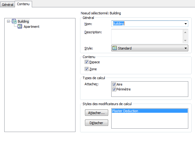 Si, par exemple, vous disposez d'un noeud de zone Balcons, vous pouvez attacher un modificateur de calcul visant à réduire la valeur des espaces calculés dans cette zone de 50 %.