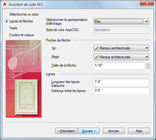 Pour modifier les propriétés des styles à l'aide de l'Assistant du style des cotes AEC
