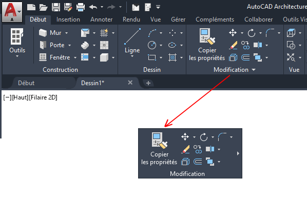 Certaines options du ruban sont groupées sous un menu déroulant. Pour y accéder, il suffit de cliquer sur la flèche en regard de la commande.