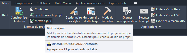 Une coche s'affiche en regard du nom de l'onglet ou du groupe de fonctions sélectionné.