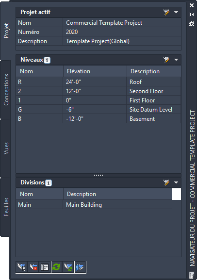 Le projet de gabarit commercial inclut cinq niveaux de base pour vous permettre de commencer progressivement.