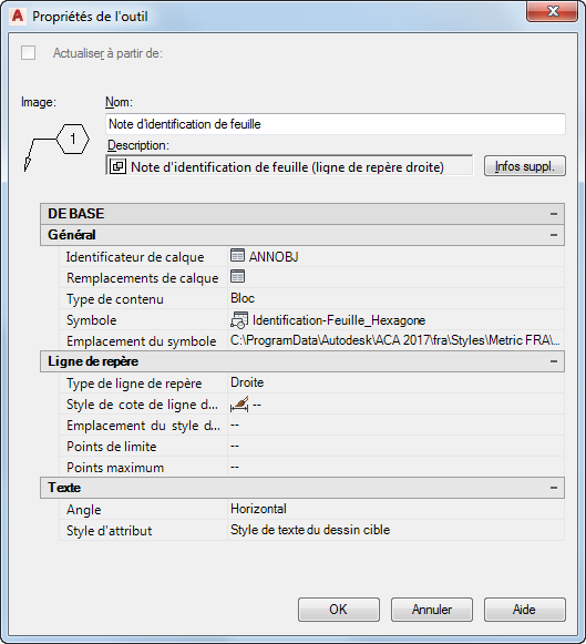 . Ces outils d'insertion de notes d'identification sont dérivés de l'outil d'annotation de base et peuvent être personnalisés au moyen de la fiche de travail Propriétés de l'outil, accessible à partir des menus contextuels des outils.