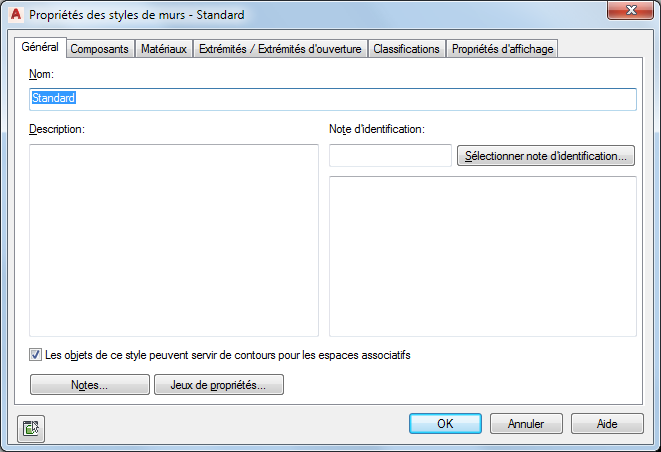 Cette procédure permet de définir dans le style d'objet la propriété Espaces liés des objets destinés à délimiter des espaces associatifs. Vous pouvez utiliser cette méthode pour tous les objets de contour utilisant des styles. Lorsqu'un style d'objet est défini pour délimiter des espaces, tous les objets de ce style délimitent des espaces associatifs. Vous pouvez toutefois modifier la propriété Espaces liés d'un objet individuel de ce style dans la palette des propriétés.