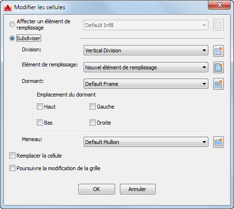 indiquer l'emplacement des dormants sur la grille créée après subdivision de la cellule sélectionnez Haut, Bas, Gauche ou Droite pour Emplacement du dormant et cliquez sur OK.