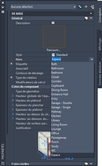 Une définition de liste est une liste de noms qui peuvent être utilisés comme noms autorisés pour les espaces ou les zones. Les définitions de listes peuvent être attachées à un style d'espace ou à un style de zone. La liste des noms est alors disponible dans la palette des propriétés lorsque vous créez ou modifiez un espace ou une zone à l'aide de ce style.
