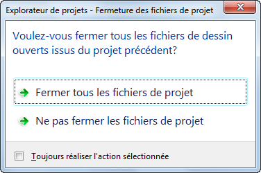 sélectionnez Toujours réaliser l'action sélectionnée et cliquez sur Fermer tous les fichiers de projet. |