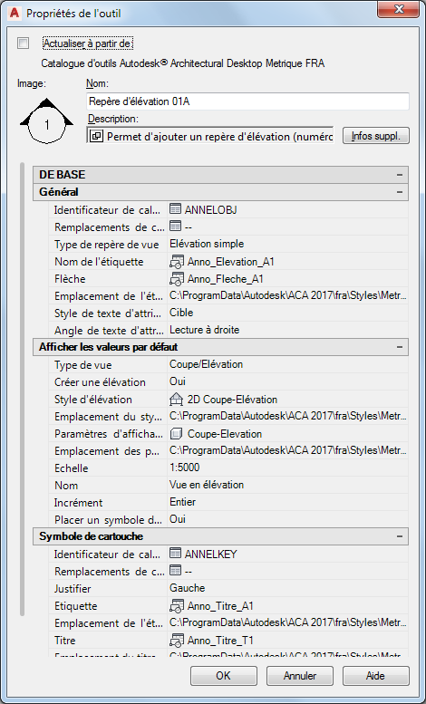 Un objet d'annotation est tout objet participant à la mise à l'échelle des annotations. AutoCAD Architecture toolset crée les objets d'annotation suivants :