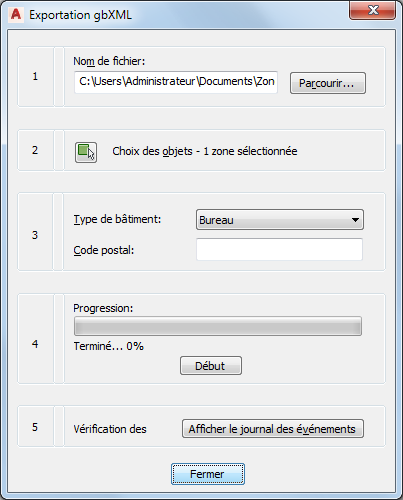 • Progression : cliquez sur Démarrer pour lancer l'exportation.