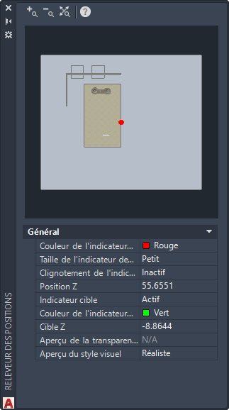 Spécifie la coordonnée Z de l'indicateur de position. Vous pouvez modifier le paramètre en saisissant une nouvelle valeur.