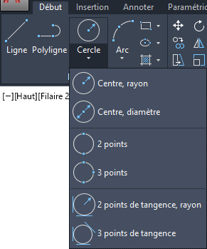 Les autres options de cercle sont disponibles dans la liste déroulante :