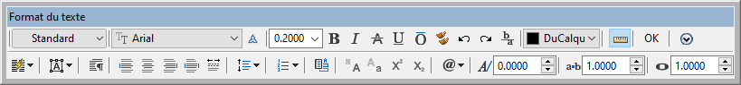 La barre d'outils Format du texte s'affiche chaque fois que vous créez ou modifiez un objet TextMult. Elle n'est pas disponible pour le texte sur une seule ligne.