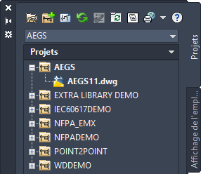 6. Dans le Gestionnaire de projets, cliquez deux fois sur le nom du projet (AEGS) pour afficher les fichiers de dessin. AEGS11 est le seul fichier de la liste.