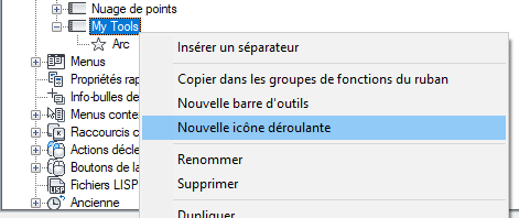 Création d'une icône déroulante à partir d'une autre barre d'outils