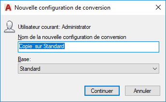 Sélectionnez une configuration de conversion existante qui servira de base à la nouvelle.