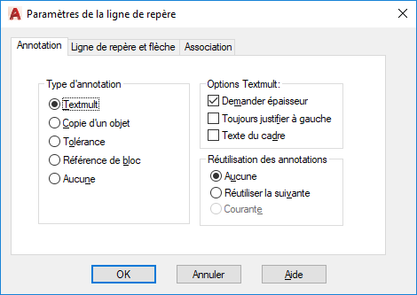 Définit les options de réutilisation d'une annotation de ligne de repère.