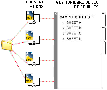 - Un jeu de feuilles est un ensemble nommé et organisé de feuilles issues de plusieurs fichiers dessin. Vous pouvez gérer, transmettre, publier et archiver des jeux de feuilles en tant qu'élément unique.