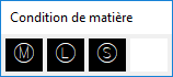 Le symbole est intégré dans la case correspondant à la condition de matière pour la première ou la deuxième valeur de tolérance dans la boîte de dialogue Tolérance géométrique.