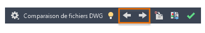 Utilisez les diverses commandes et options d'affichage de la barre d'outils Comparaison de fichiers DWG pour passer en revue les différences entre le dessin courant et un dessin de comparaison spécifique.