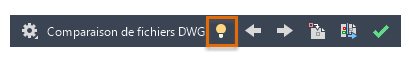 - Cliquez sur l'icône en forme d'ampoule située à côté de l'option Pas dans le dessin courant ou Seulement dans le dessin courant pour activer/désactiver la visibilité des différences entre les fichiers comparés ou les fichiers du dessin courant.