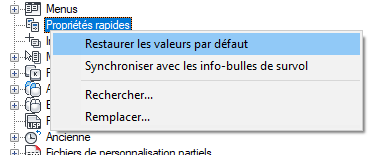 Restauration des paramètres par défaut du groupe de fonctions Propriétés rapides