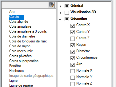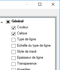 - Dans le volet Propriétés, activez les cases à cocher en regard des propriétés générales que vous voulez afficher dans la palette Propriétés rapides pour tous les types d'objet.