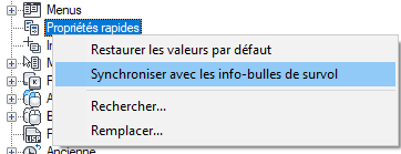 Synchronisation des propriétés rapides avec les info-bulles de survol