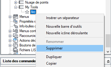3. A l'aide du bouton droit de la souris, cliquez sur la commande ou sur le contrôle à supprimer. Cliquez sur le bouton Supprimer.