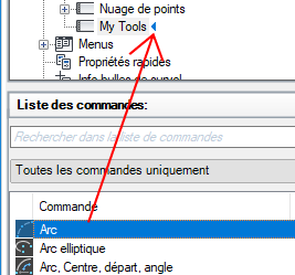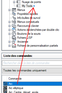 4. Dans le volet Liste des commandes, faites glisser la commande que vous voulez ajouter à la barre d'outils dans le volet Personnalisations dans <nom de fichier>.
