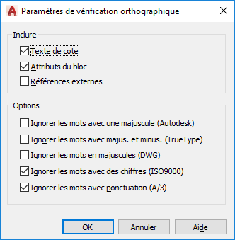Permet d'indiquer les options de texte spécifique qui seront vérifiées dans votre dessin.