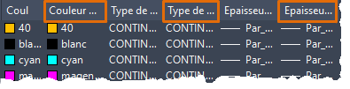 Les remplacements de propriétés de calques s'appliquent à la fenêtre de présentation courante. Lorsque vous cliquez deux fois sur une fenêtre de présentation pour qu'elle devienne active, d'autres colonnes apparaissent dans le Gestionnaire des propriétés des calques.