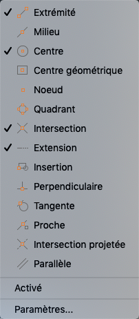 Dans la barre d'état, cliquez sur Accrochage aux objets avec le bouton droit de la souris, puis choisissez Paramètres.
