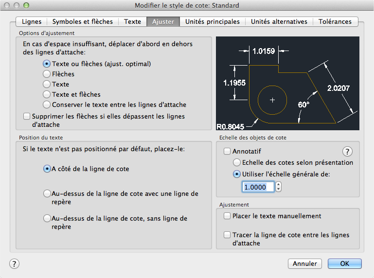 Controls the placement of dimension text, arrowheads, leader lines, and the dimension line.