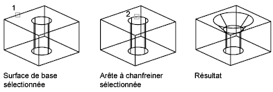 Arrondissez, raccordez ou biseautez les arêtes de solides 3D à l'aide des commandes ARETERACCORD et ARETECHANFREIN.
