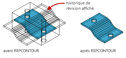 Vous pouvez retirer l'historique d'un objet composé sélectionné en réglant son paramètre Historique sur Aucun, ou en entrant la commande REPCONTOUR. Une fois qu'un historique a été retiré, vous ne pouvez plus sélectionner et modifier les composants d'origine du solide qui ont été retirés. Vous pouvez relancer la rétention de l'historique pour le solide en réglant à nouveau le paramètre Historique sur Enregistrement.