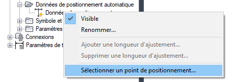 Option Sélectionner un point de placement dans le menu contextuel Données de positionnement