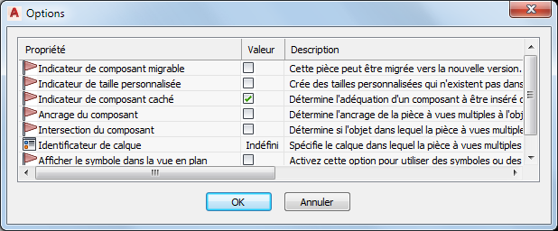 Pour obtenir une description de ces paramètres, reportez-vous à la rubrique Comportements à l'insertion d'un composant paramétrique.