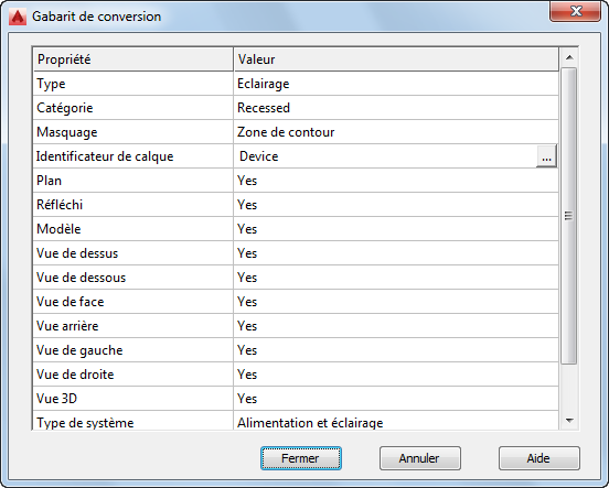 créer un gabarit | Cliquez sur Créer. Dans la zone Ouvrir un fichier, spécifiez l'emplacement du nouveau gabarit, puis tapez un nom de fichier. Cliquez sur Enregistrer. Dans la boîte de dialogue Gabarit de conversion, indiquez les valeurs des paramètres du gabarit. Cliquez sur Fermer pour retourner à la boîte de dialogue Script de conversion de l'appareil. |