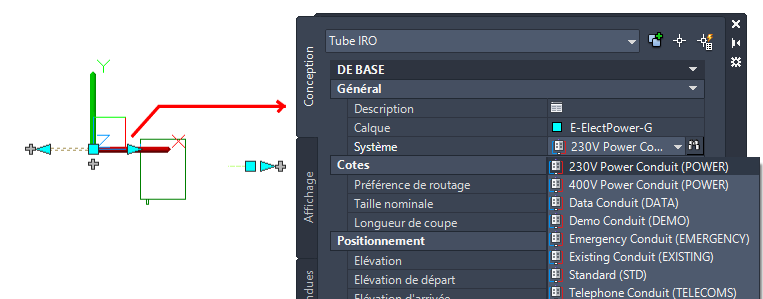 Les systèmes permettent de simplifier le respect des normes du projet à l'échelle de l'ensemble des dessins. Vous pouvez modifier la désignation du système des différents points de connexion. Pour plus d'informations, reportez-vous à la rubrique Utilisation de systèmes.