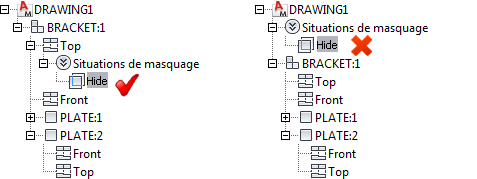 Dans un dessin de type structure mécanique, la position de la situation de masquage sur la structure mécanique est importante.
