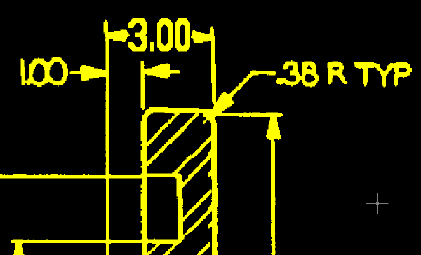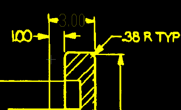 L'exemple suivant montre comment l'image doit apparaître une fois que vous avez remplacé l'ancien texte de cote par le nouveau texte raster créé à partir du texte de cote du vecteur.